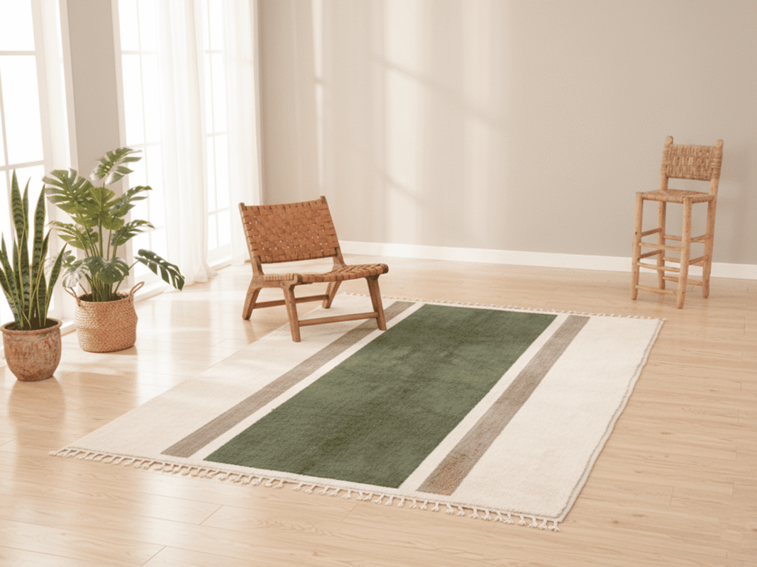 Beni Ourain Moroccan Area Rug – Green Block Minimalism – Handmade Wool
