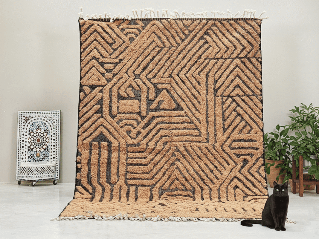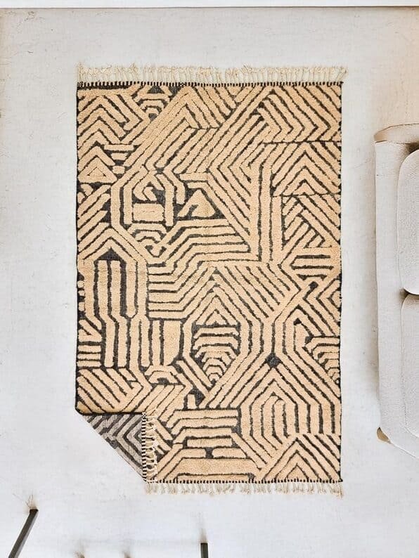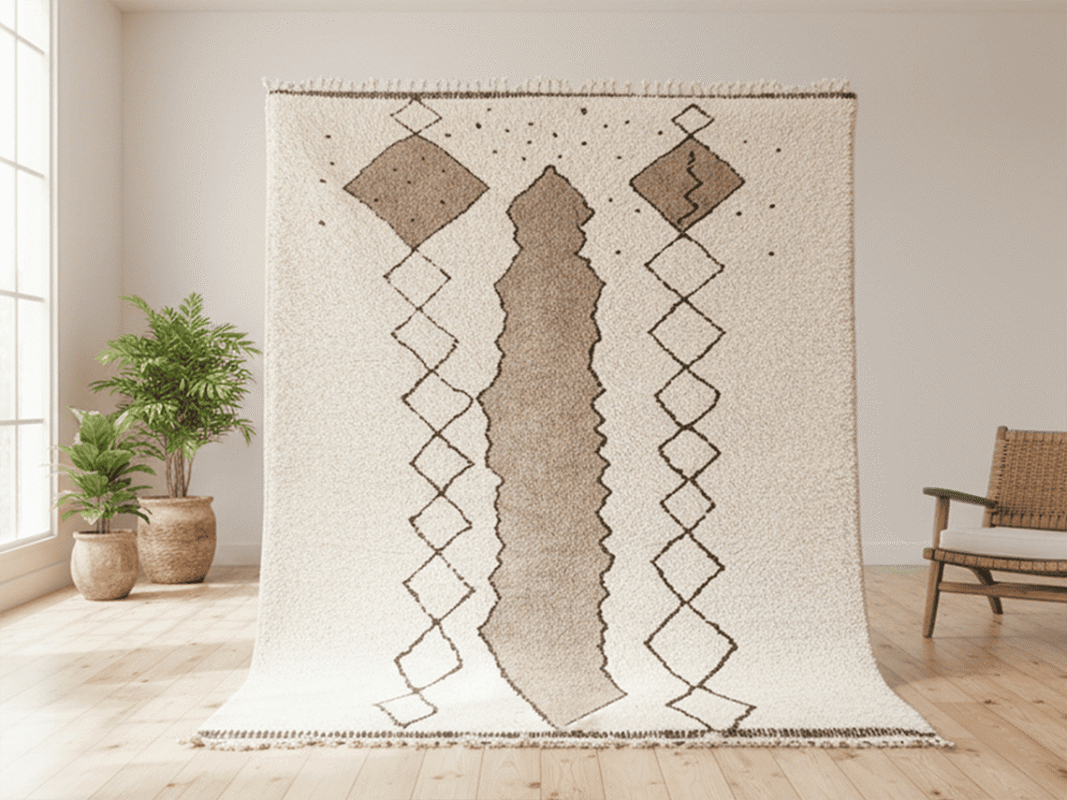 Beni Ourain Moroccan Rectangular Area Rug – Tufted Geometry – Handmade Wool