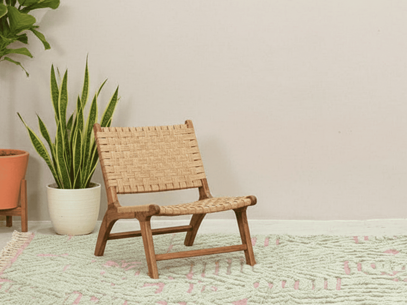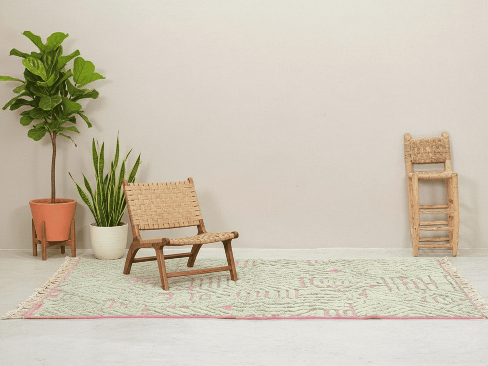 Natural wool, high-pile texture, modern artisanal design.