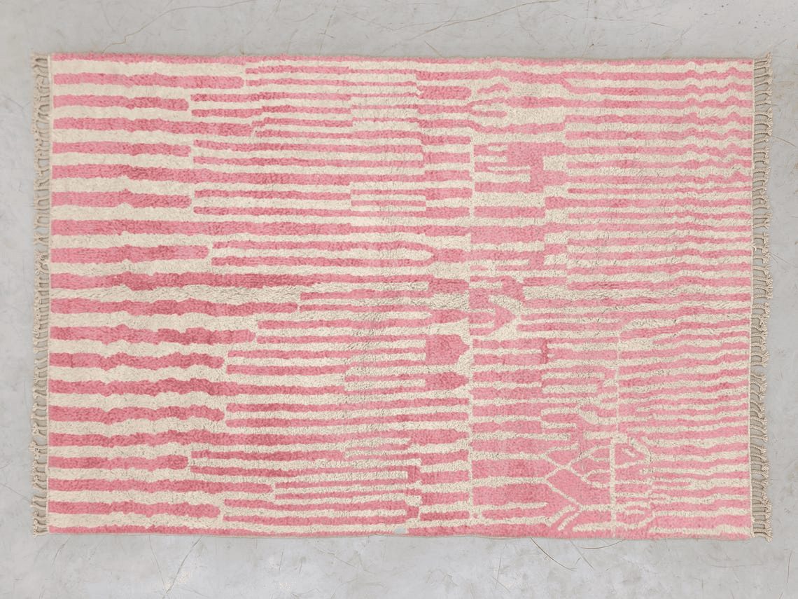 Azilal Moroccan Area Rug – Pink Striped Abstract Design – Handmade Wool