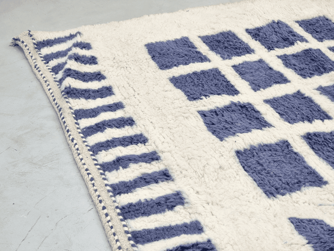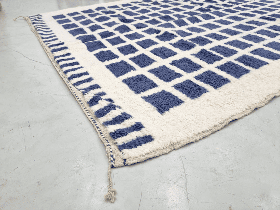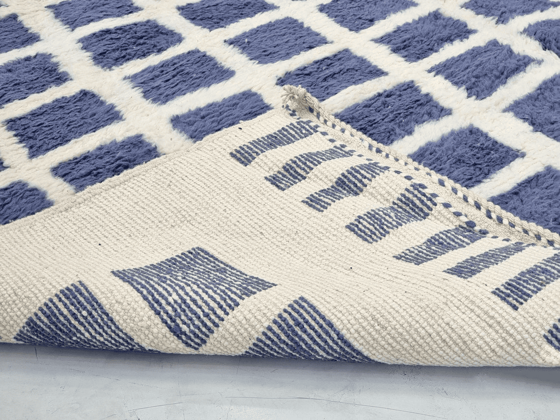 Beni Ourain Moroccan Area Rug – Blue Grid Pattern – Handmade Wool