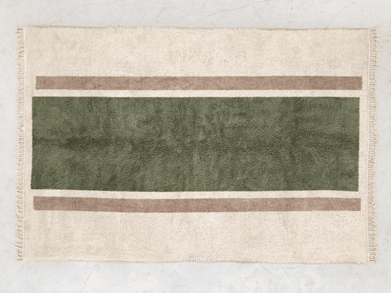 Handmade Beni Ourain Moroccan area rug with minimalist striped design.