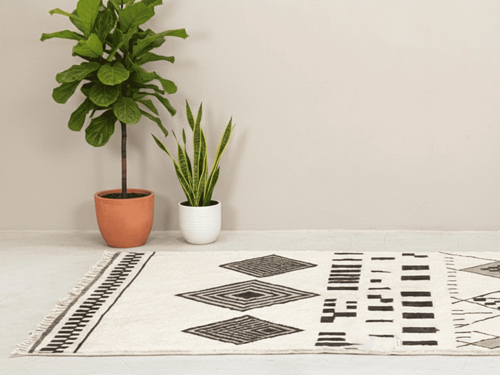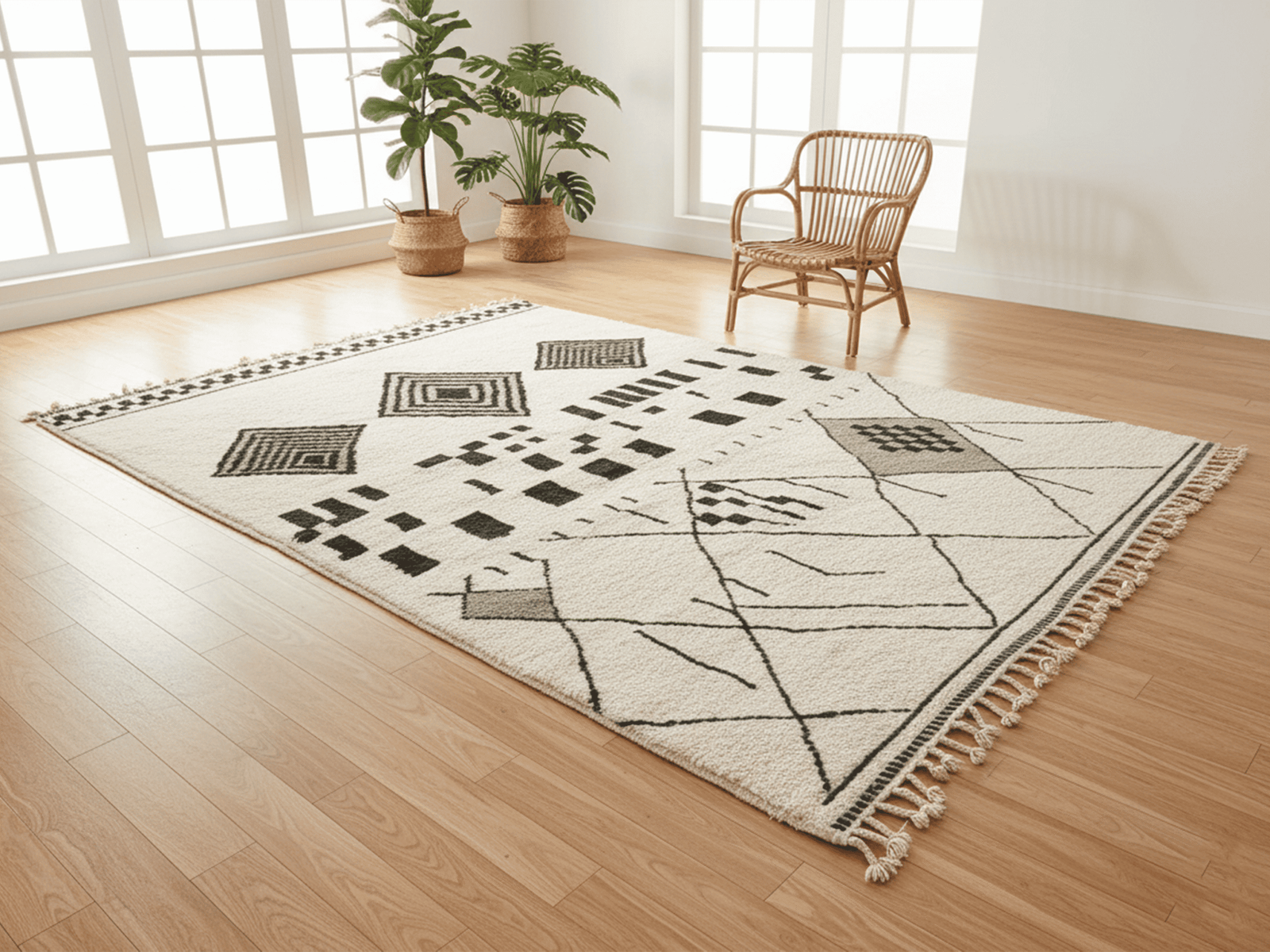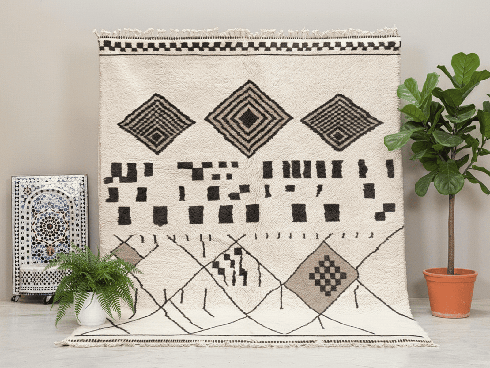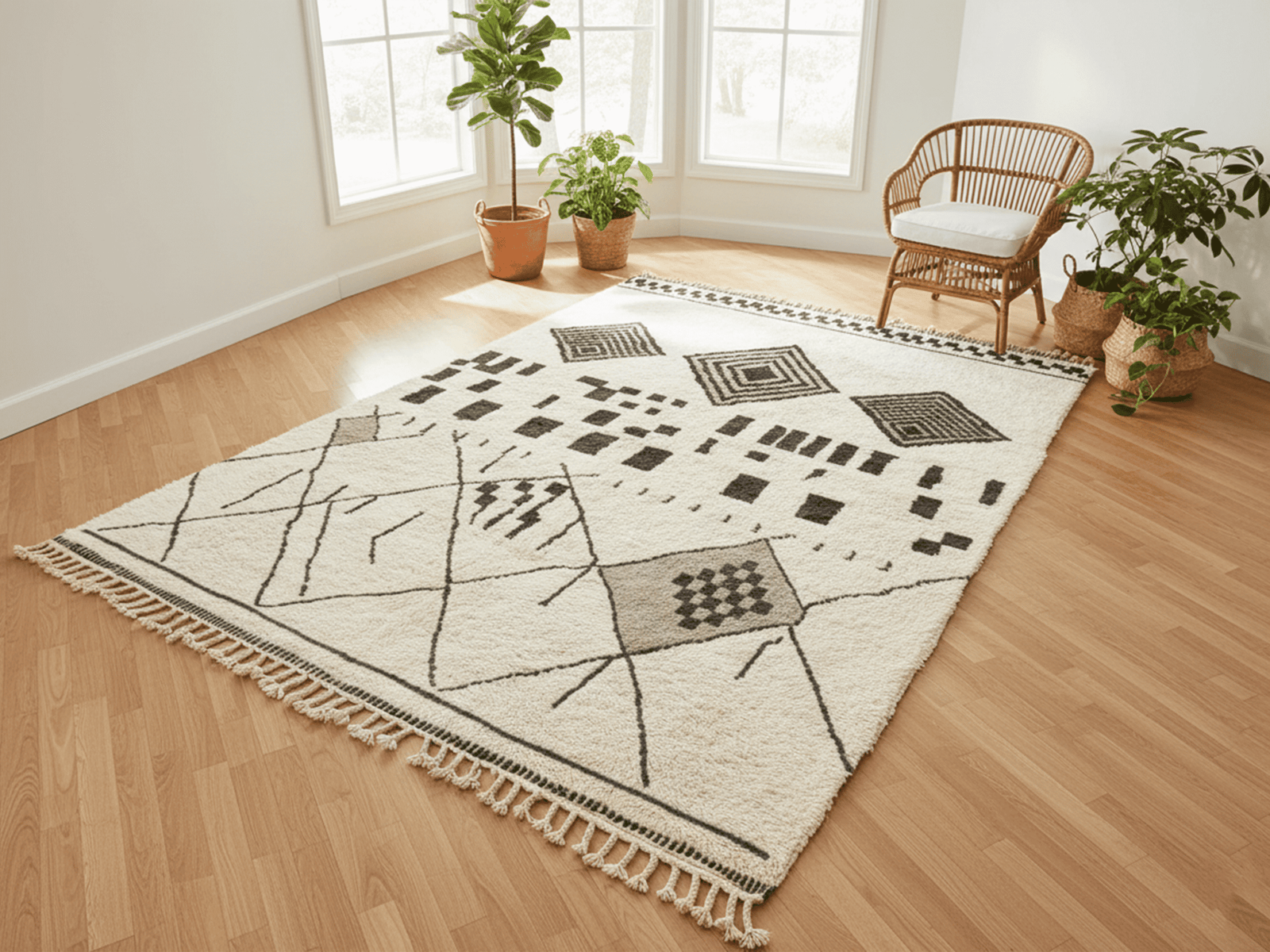 A timeless ivory wool rug with bold Berber geometry and calm modern balance