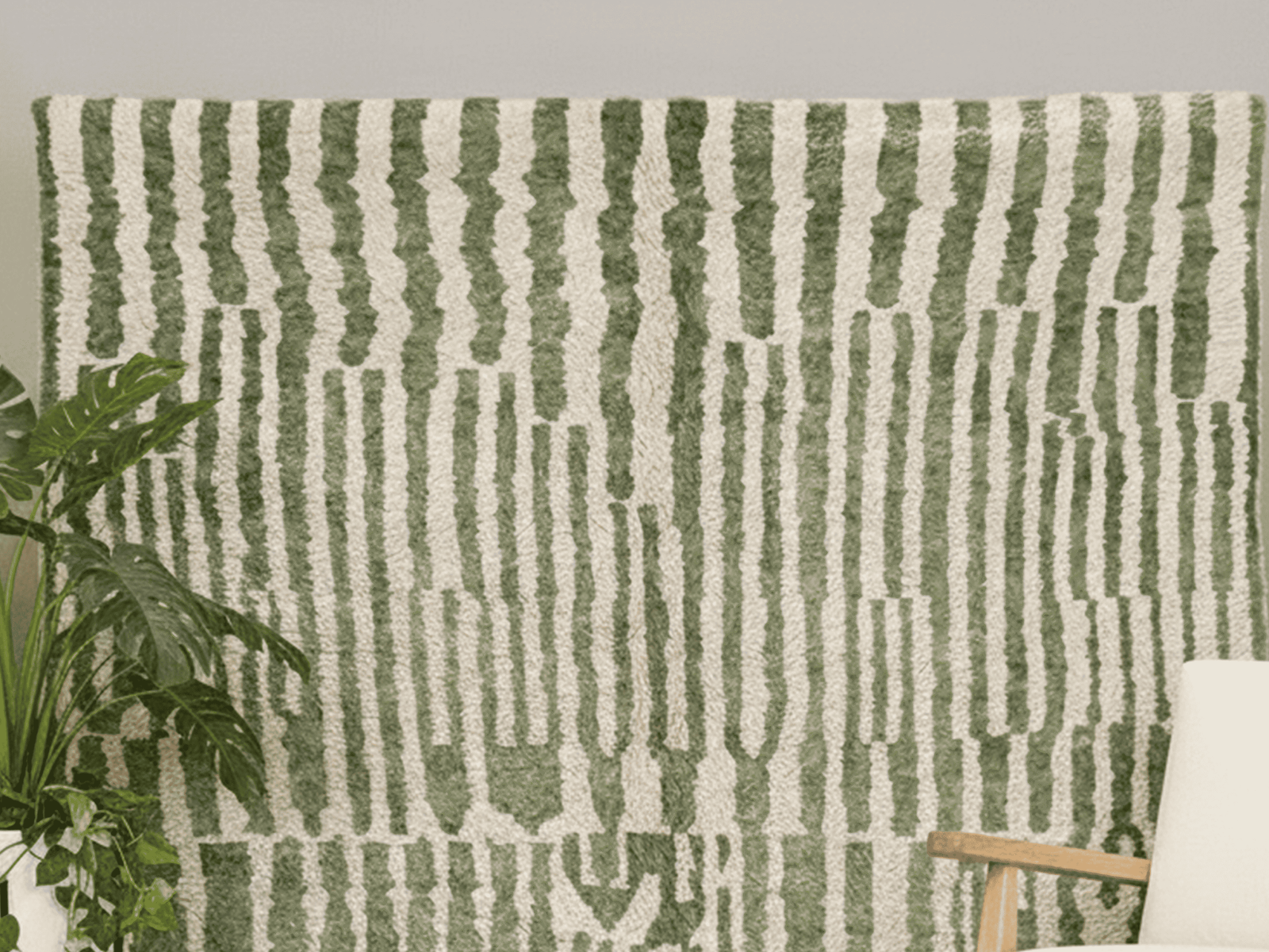 Natural wool, soft pile, and a contemporary artisan aesthetic.