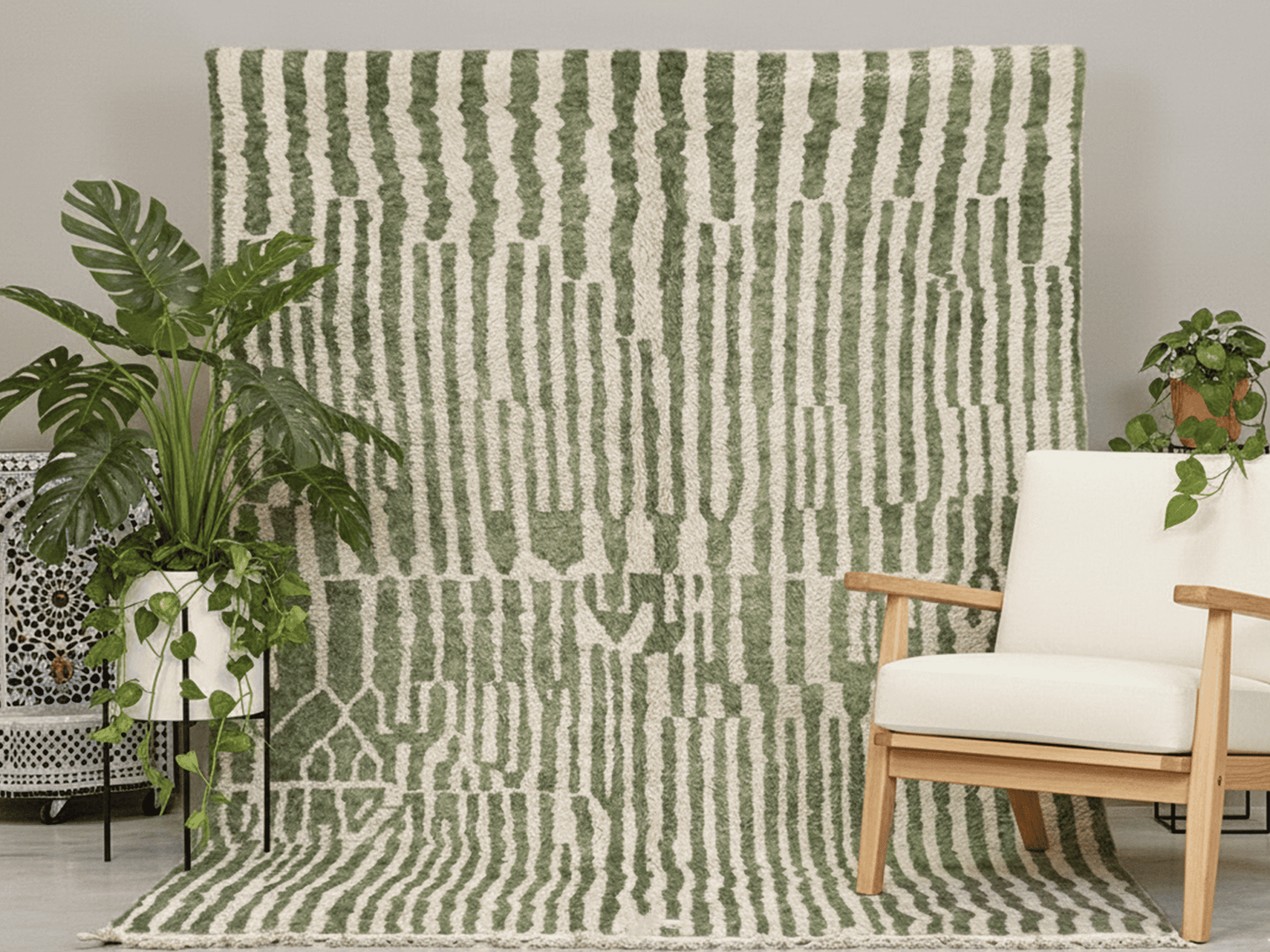 This rug is crafted in a traditional Moroccan weaving region, using handweaving techniques rooted in Berber craftsmanship.