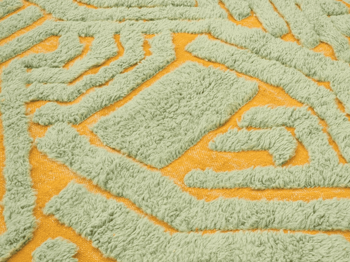 Handmade wool rug featuring a modern, textured surface and bold contrast.